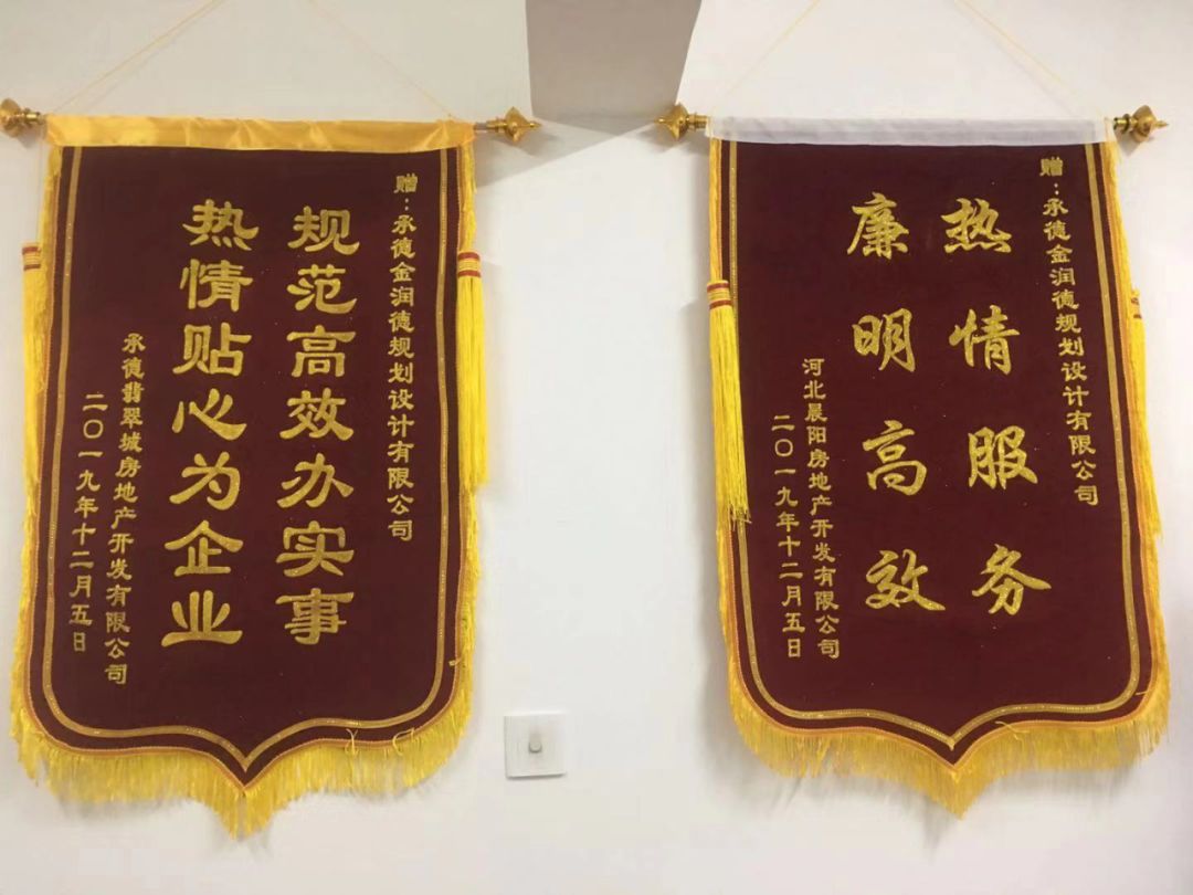 河北晨陽(yáng)房地產(chǎn)開發(fā)有限公司、承德翡翠城房地產(chǎn)開發(fā)有限公司為表達(dá)對(duì)金潤(rùn)德規(guī)劃設(shè)計(jì)有限公司房產(chǎn)測(cè)繪部辦事高效、服務(wù)熱情的謝意,先后為承德金潤(rùn)德規(guī)劃設(shè)計(jì)有限公司送來(lái)了兩面錦旗。這兩面錦旗不僅僅體現(xiàn)了客戶對(duì)金潤(rùn)德規(guī)劃設(shè)計(jì)有限公司房產(chǎn)測(cè)繪部專業(yè)上的充分肯定,服務(wù)上的充分贊揚(yáng),也鞭笞著金潤(rùn)德公司將以此為全新起點(diǎn),再次揚(yáng)帆再起航。